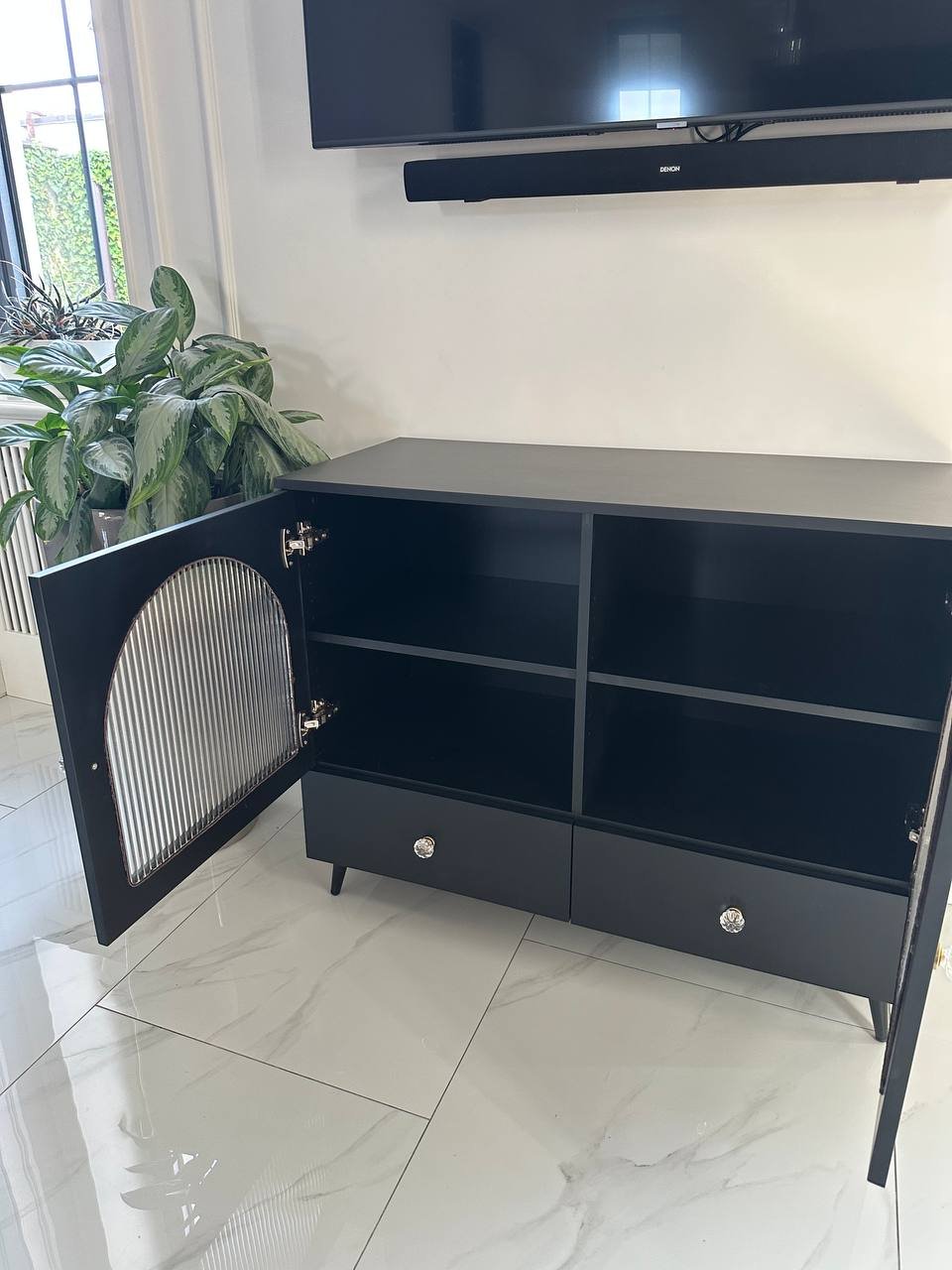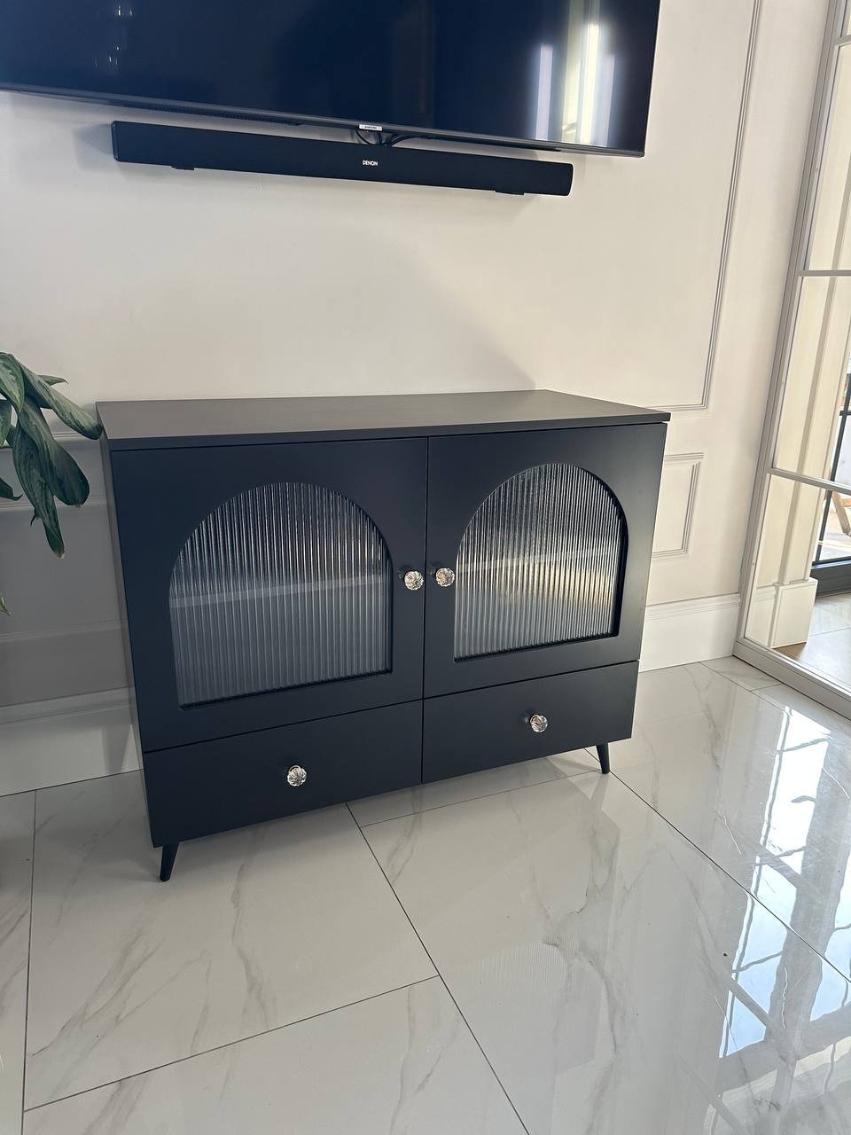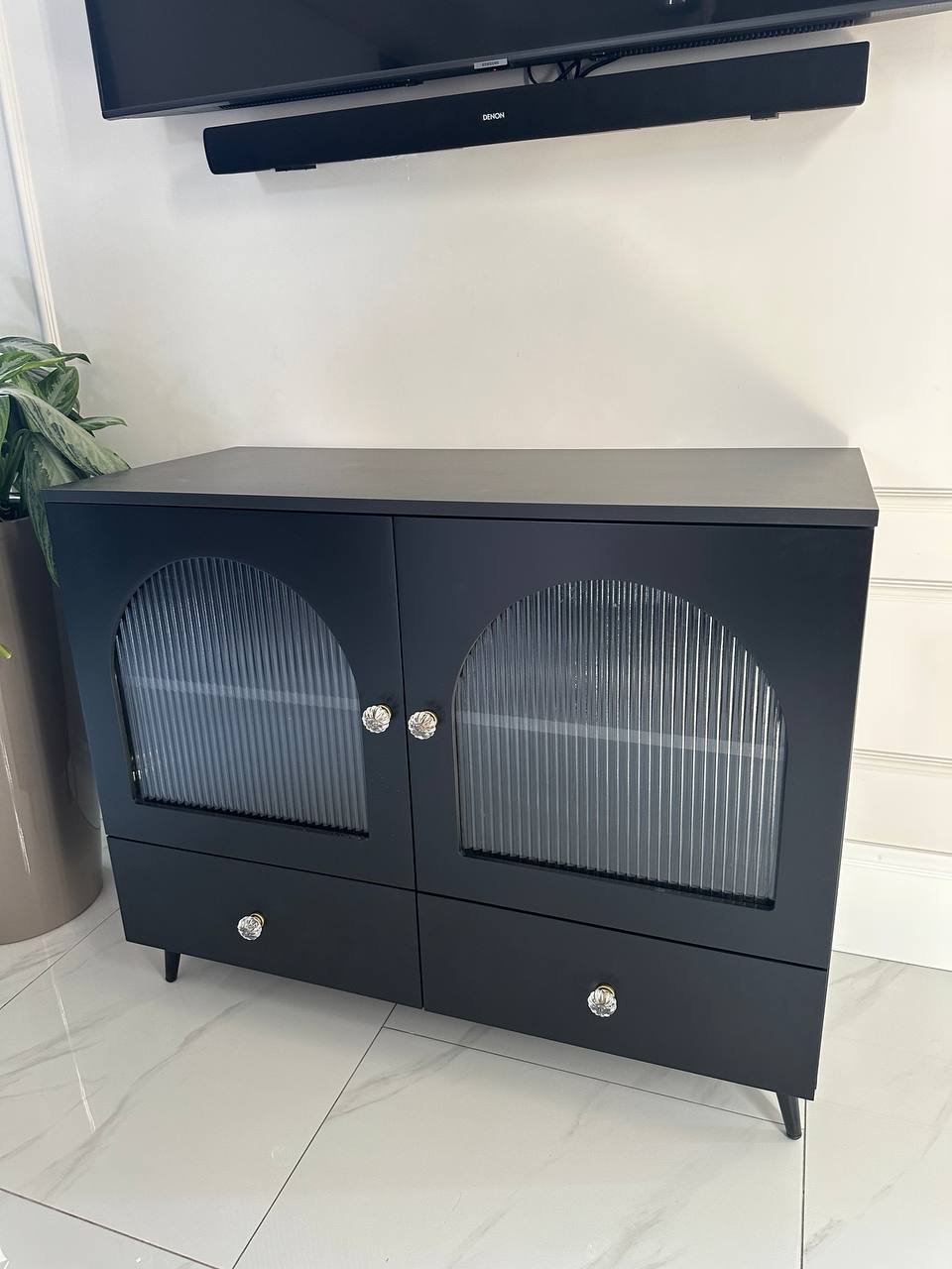Тумба дополнена фактурным стеклом, которое не только добавляет утонченности в её внешний вид, но и увеличивает функциональность изделия. Стеклянные элементы создают лёгкость и визуально расширяют пространство, при этом оставаясь прочными и безопасными. Такое решение идеально подходит для хранения предметов, придавая вашему интерьеру больше стиля и практичности.
