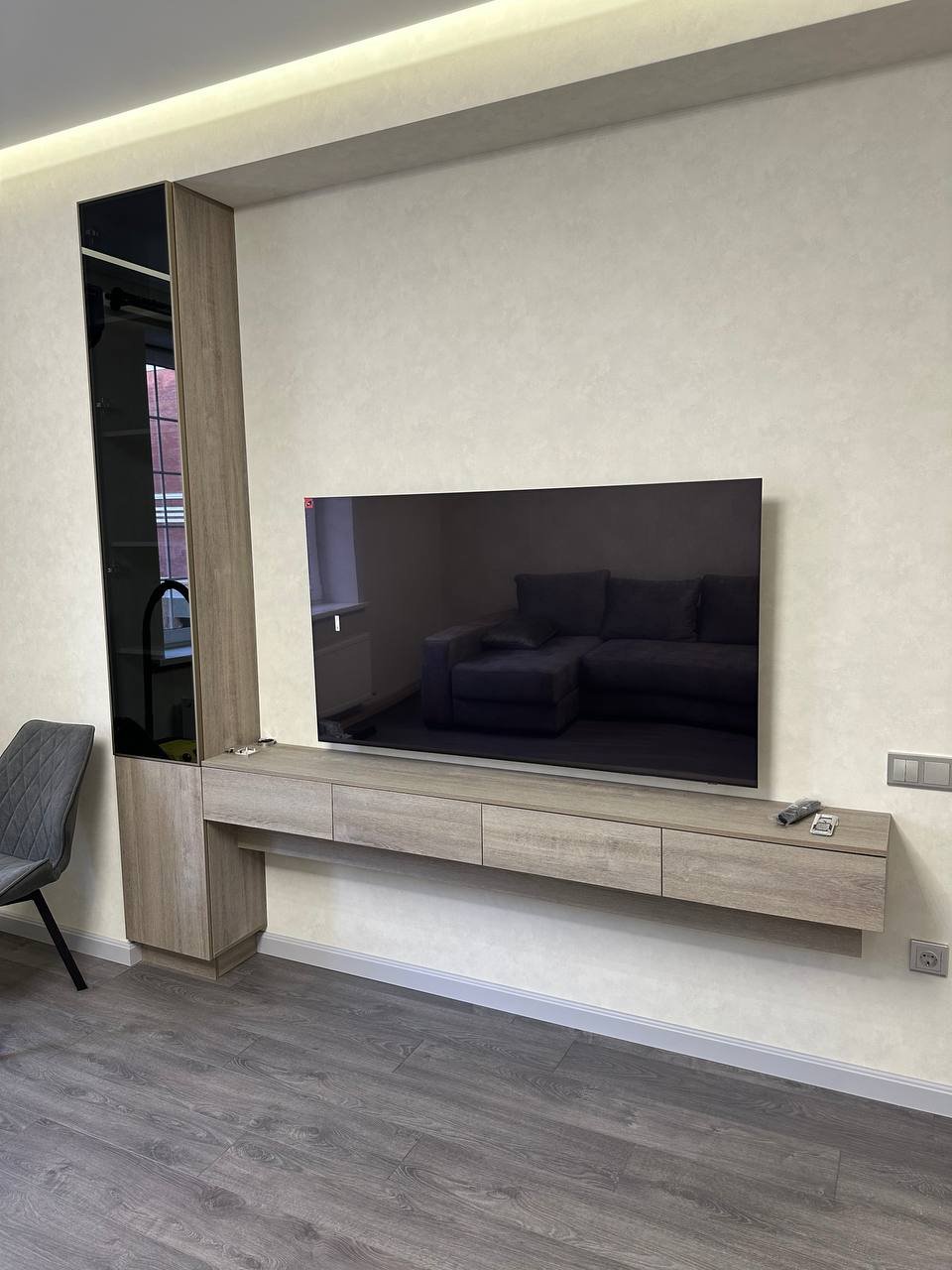 ТВ зона, материал ЛДСП Egger, столешница искусственный камень, фурнитура Hettich